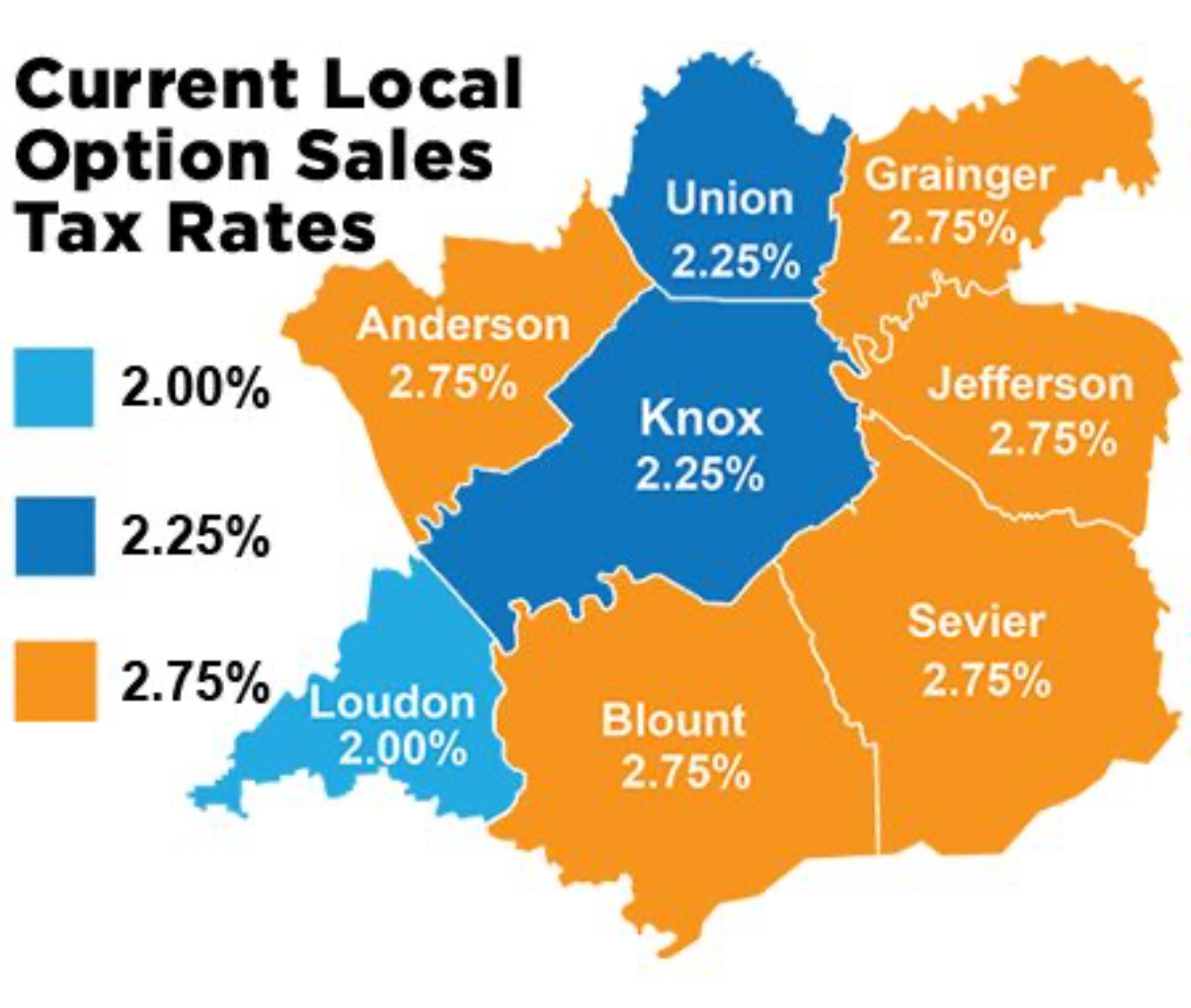 Union and Knox counties are at 2.25%, while Loudon is at 2%. All the others are at the maximum amount allowed by state law.